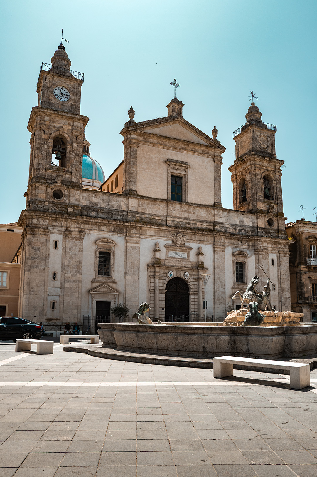 Bombardata nel 1943, la cattedrale subì la perdita delle vetrate istoriate, ricomposte negli anni Cinquanta insieme al restauro degli stucchi e all’installazione di un organo a due tastiere. Dalla scalinata esterna lo sguardo abbraccia la Fontana del Tritone e il tessuto ottocentesco della piazza, mentre all’interno il profumo d’incenso, la penombra delle navate laterali e i riverberi dei metalli sacri restituiscono al visitatore l’atmosfera sospesa di un luogo in cui arte internazionale e devozione popolare convivono senza tempo, offrendo la chiave per comprendere la storia religiosa e civile della Sicilia centrale.
