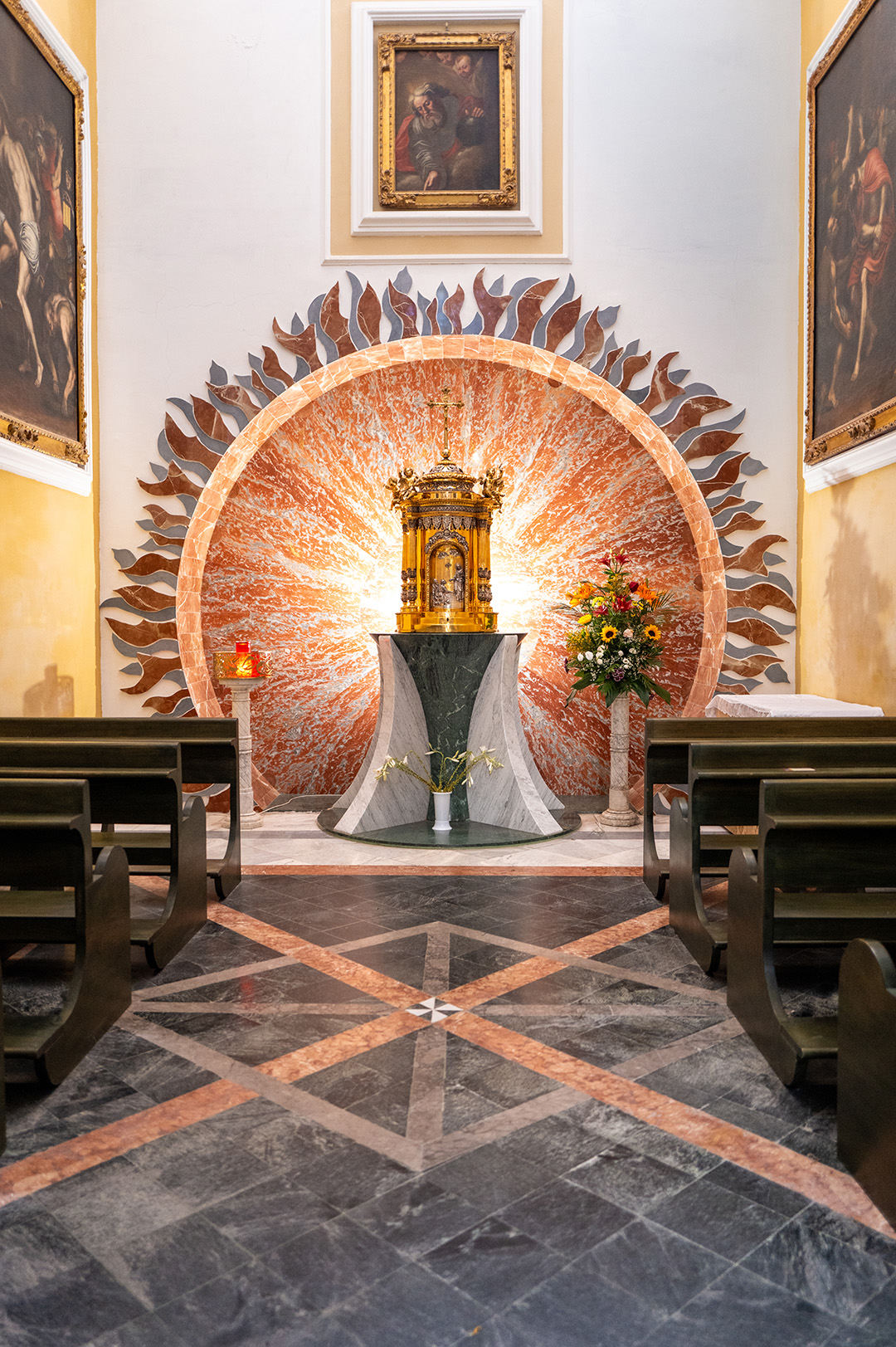 Nelle cappelle laterali spiccano la statua lignea dell’Immacolata del 1760, rivestita da morbidi panneggi in argento sbalzato, e il Crocifisso di fra’ Umile da Petralia, scultura carica di pathos che la tradizione vuole abbia sudato durante la peste seicentesca. Ogni 29 settembre la chiesa diventa cuore pulsante della festa di San Michele Arcangelo: la preziosa effigie argentea del patrono scende dall’altare e percorre le vie illuminate, rinnovando un legame identitario che unisce liturgia e folklore.