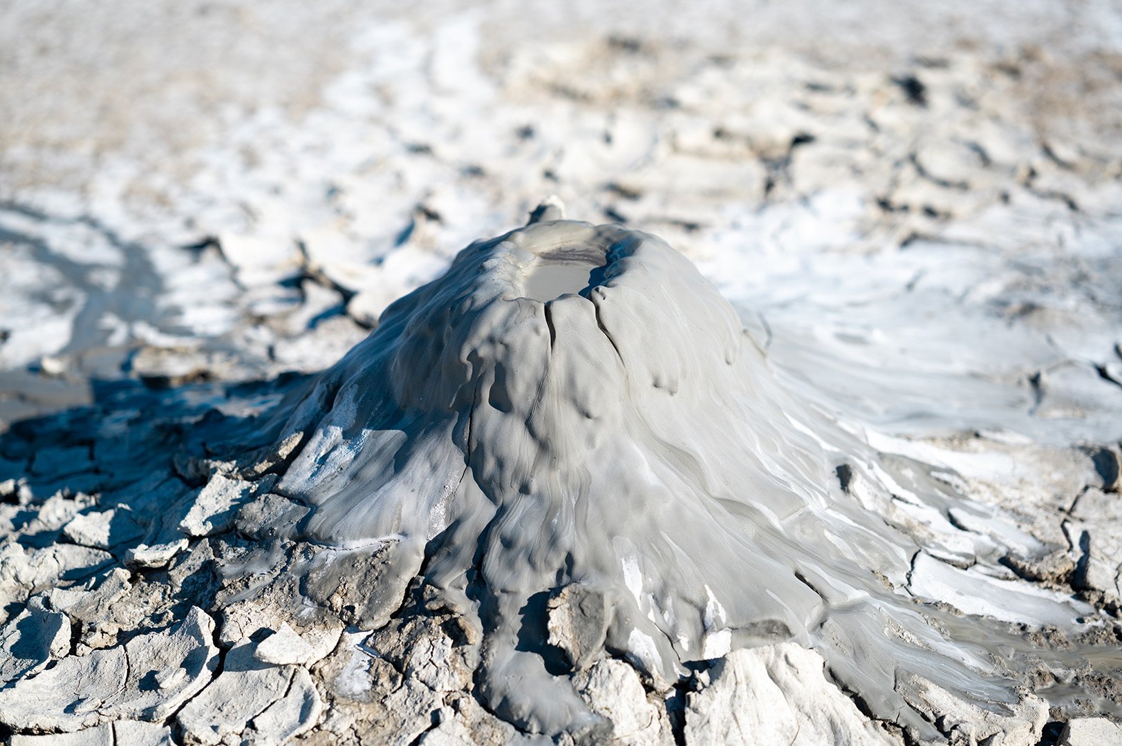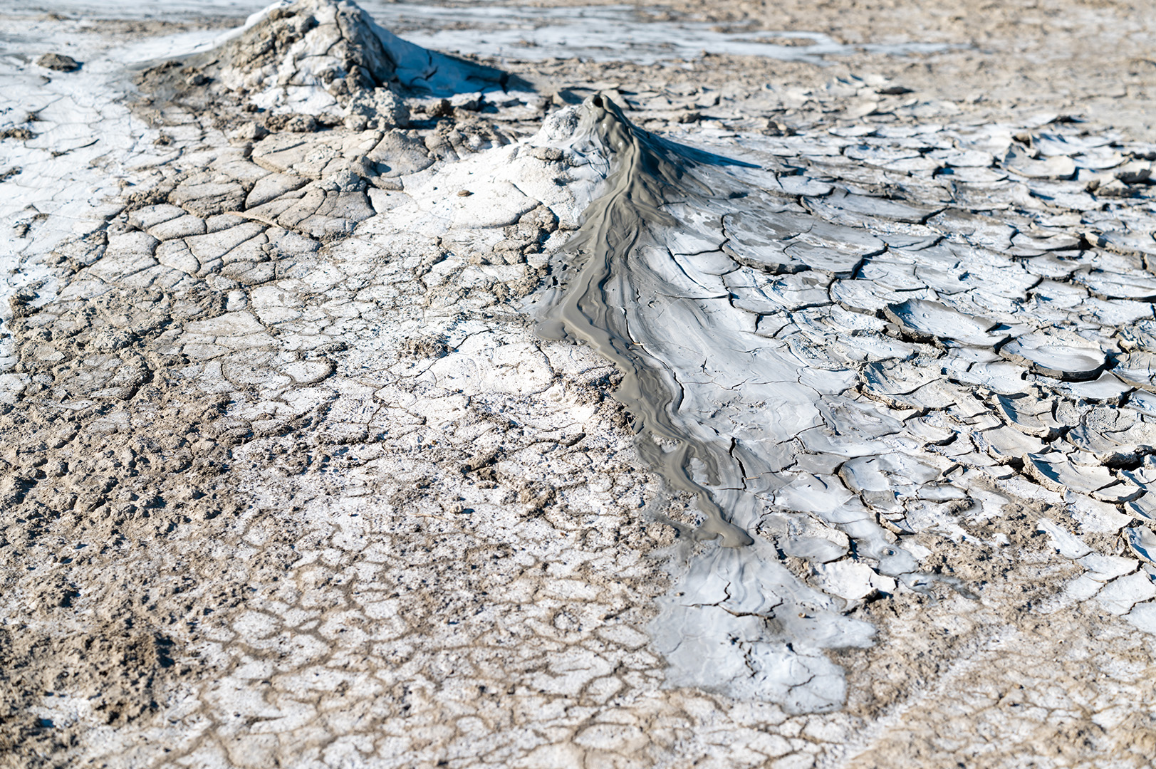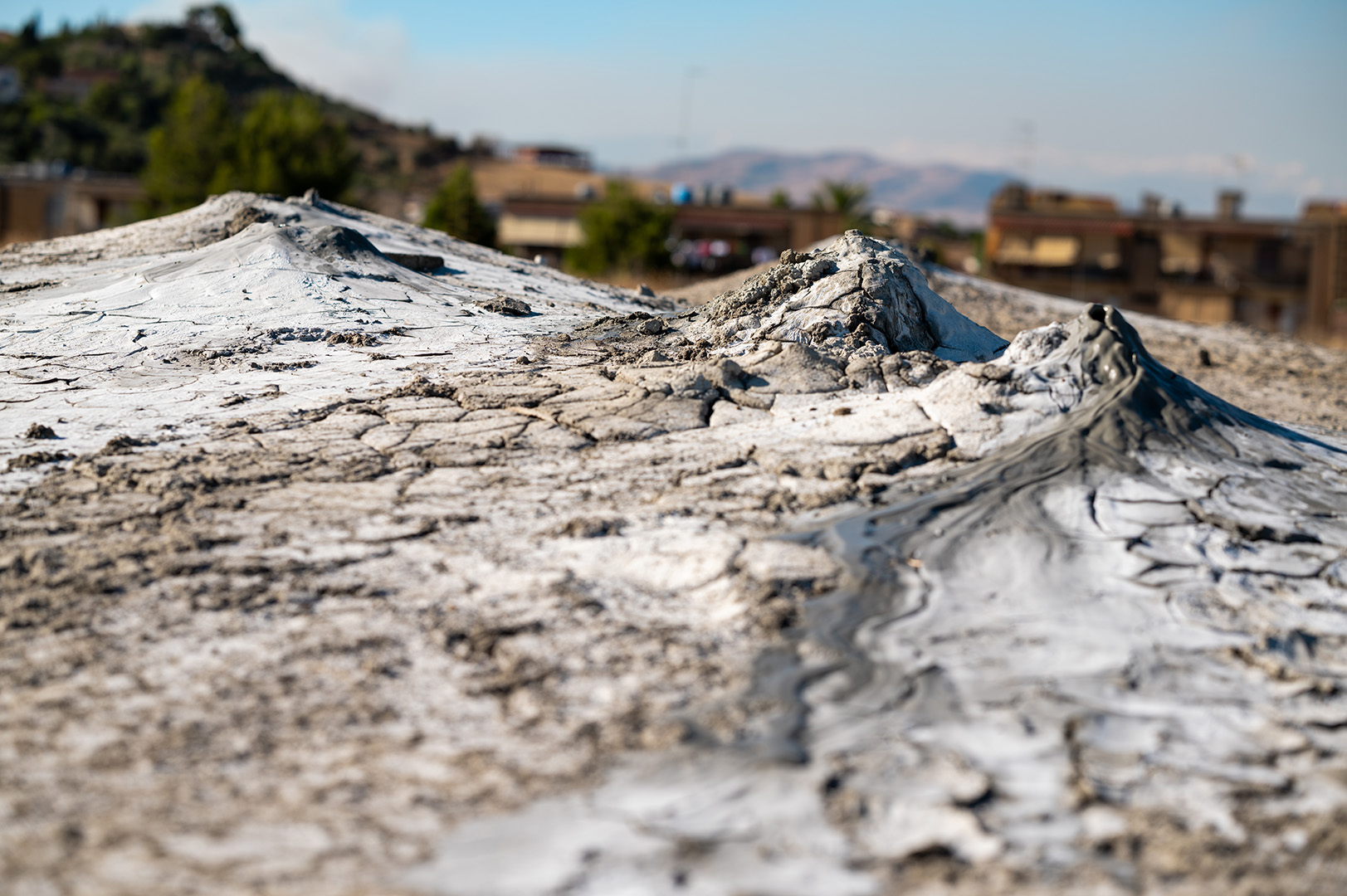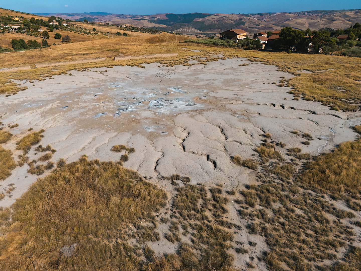 Dal termine arabo maqlūb, “terra che si capovolge”, le maccalube qui affiorano a 420 m di quota vicino al villaggio minerario di Santa Barbara. I conetti, alti in media un metro, si formano quando bolle di metano spingono verso la superficie argille salmastre e acqua sottopressione; il fango, ricco di sali, asciuga in lastre screpolate che danno al paesaggio un aspetto lunare e impediscono la crescita della vegetazione, ragione per cui l’altura è detta “terrapelata”. L’attività è generalmente tranquilla, ma la cronaca registra sporadici eventi parossistici con esplosioni di fango e boati udibili a chilometri, legati a rapidi accumuli di gas in profondità e studiati per valutarne la pericolosità.