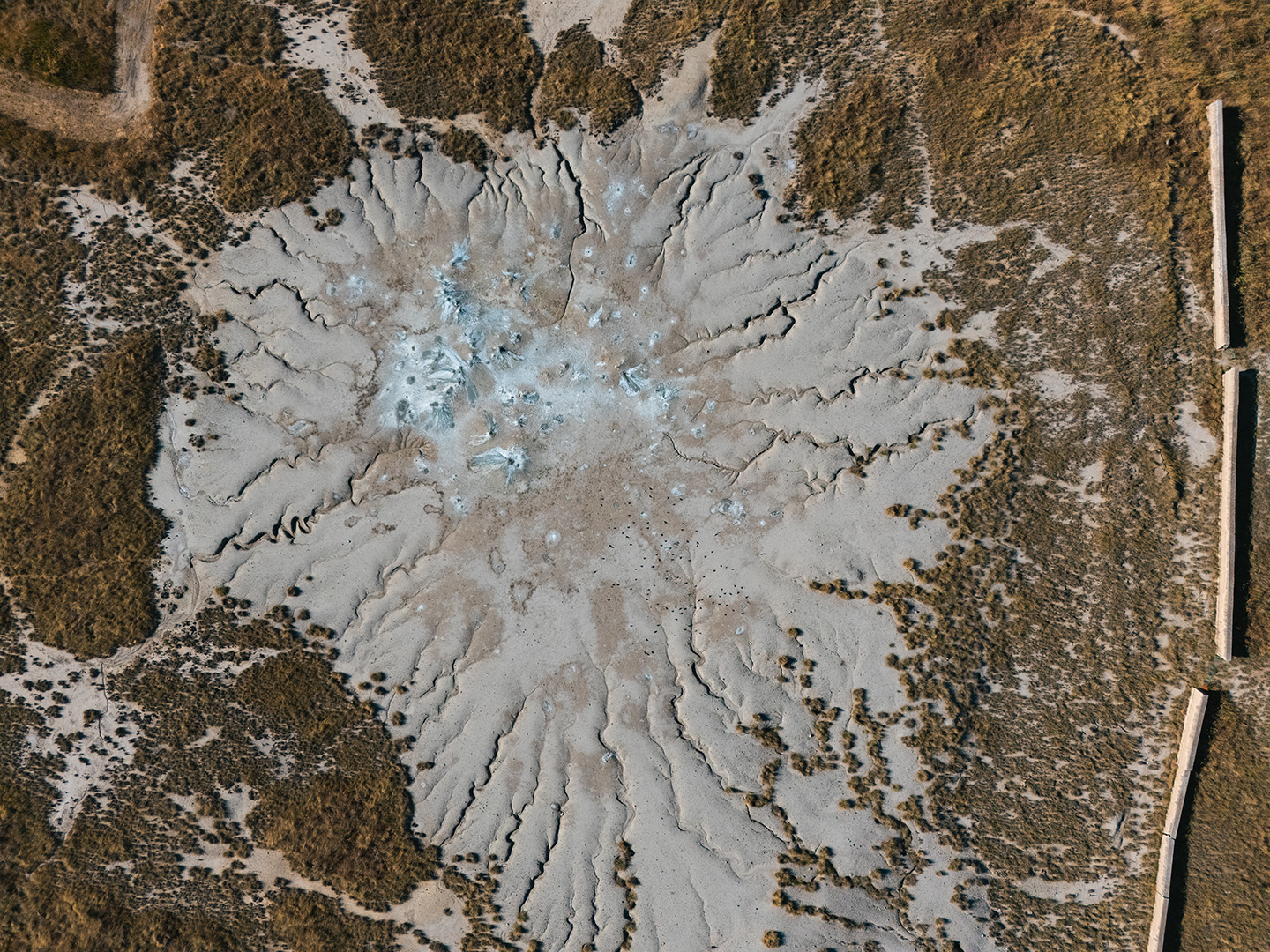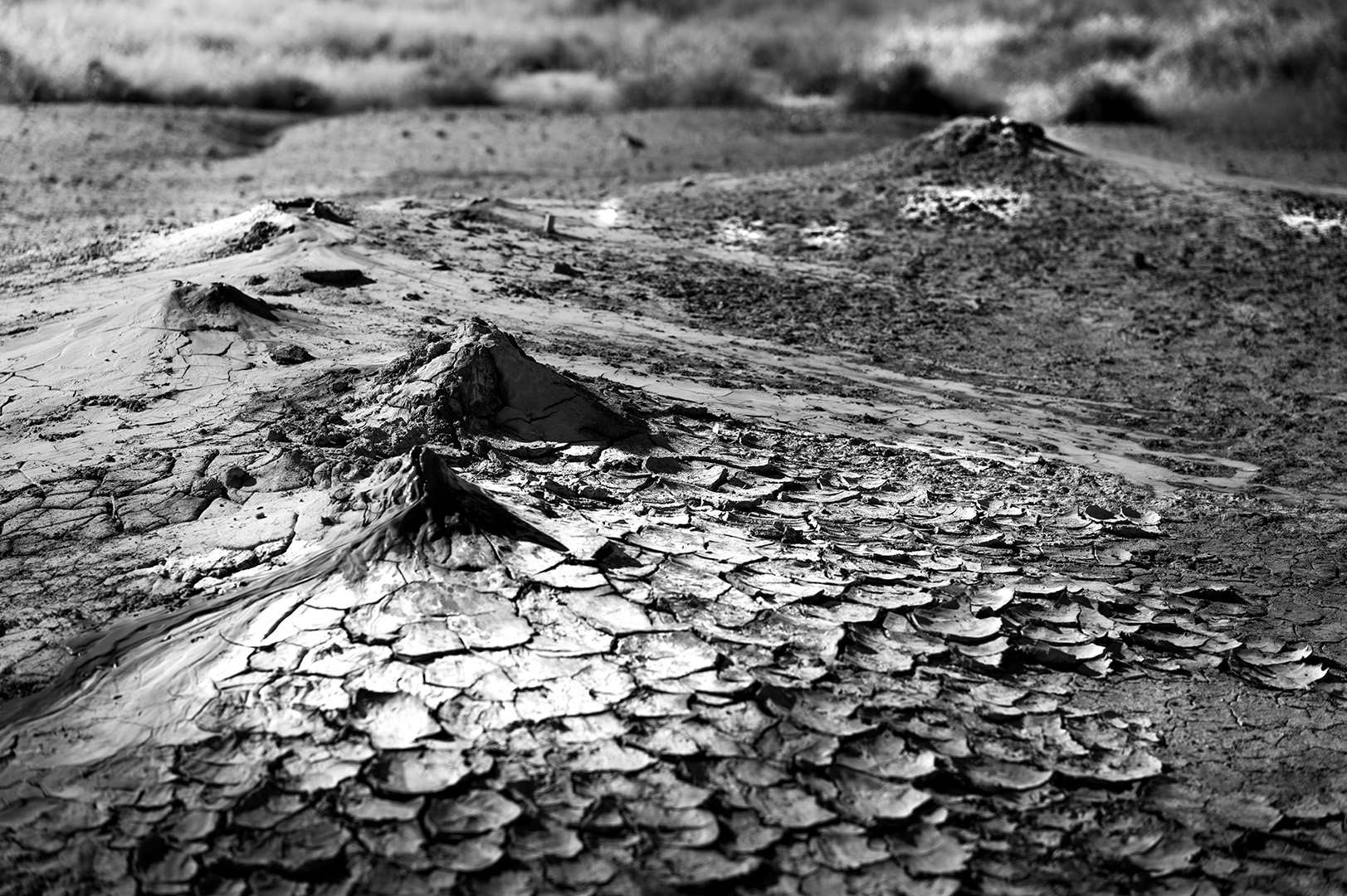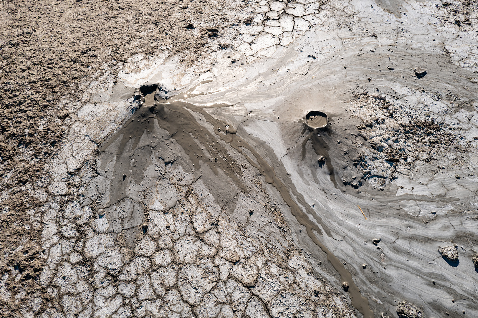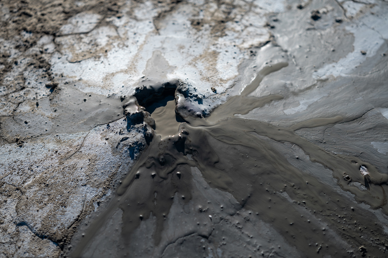 Dal termine arabo maqlūb, “terra che si capovolge”, le maccalube qui affiorano a 420 m di quota vicino al villaggio minerario di Santa Barbara. I conetti, alti in media un metro, si formano quando bolle di metano spingono verso la superficie argille salmastre e acqua sottopressione; il fango, ricco di sali, asciuga in lastre screpolate che danno al paesaggio un aspetto lunare e impediscono la crescita della vegetazione, ragione per cui l’altura è detta “terrapelata”. L’attività è generalmente tranquilla, ma la cronaca registra sporadici eventi parossistici con esplosioni di fango e boati udibili a chilometri, legati a rapidi accumuli di gas in profondità e studiati per valutarne la pericolosità.
