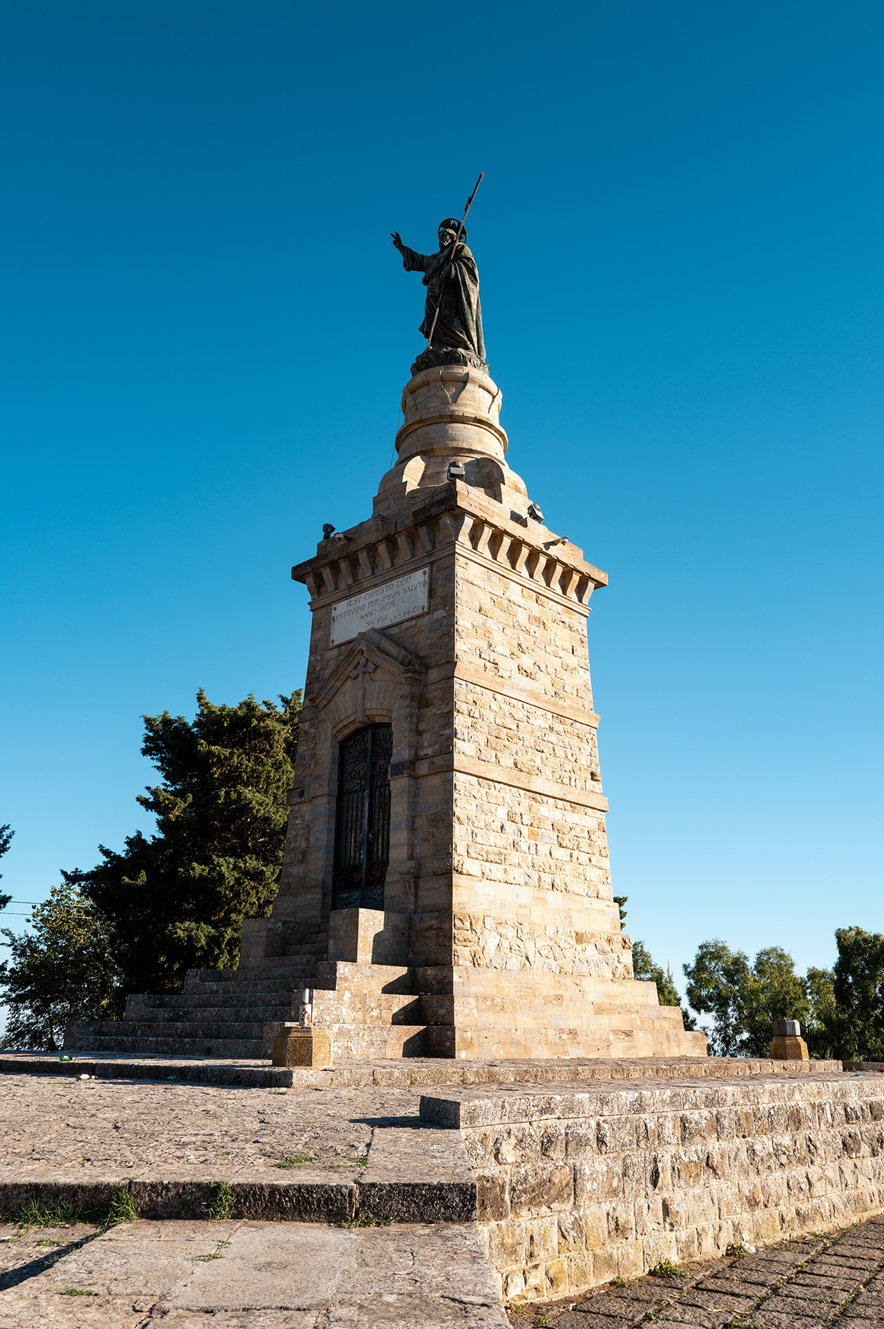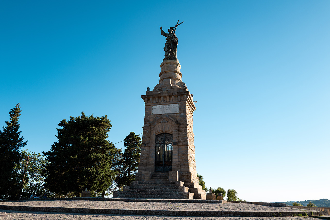 Il Monumento rappresenta uno dei pochi esempi in Sicilia del progetto promosso da Papa Leone XIII per il Giubileo del 1900, quando inizialmente si pensò a venti statue del Cristo redentore distribuite in tutta Italia, ma solo sei o sette videro la luce per ragioni di bilancio. Grazie all’impegno del vescovo Ignazio Zuccaro e del sindaco Berengario Gaetani, il comitato nisseno commissionò la statua alla ditta romana “Rosa e Zanazio” e affidò il disegno del basamento all’architetto palermitano Ernesto Basile, autore anche del Teatro Massimo di Palermo; la prima pietra fu posta il 13 maggio 1900 e, derivato dai bronzi di due cannoni pontifici, il Redentore di 4,85 m di altezza e 2 tonnellate fu trasportato in cima su un carro trainato da sei coppie di buoi, per poi essere benedetto il 30 luglio da Cardinale Francica-Nava. Il piedistallo in pietra calcarea grigia locale, a pianta quadrata che si trasforma in cilindro, ospita al suo interno una piccola cappella e una cripta, ed è circondato da una scalinata.
