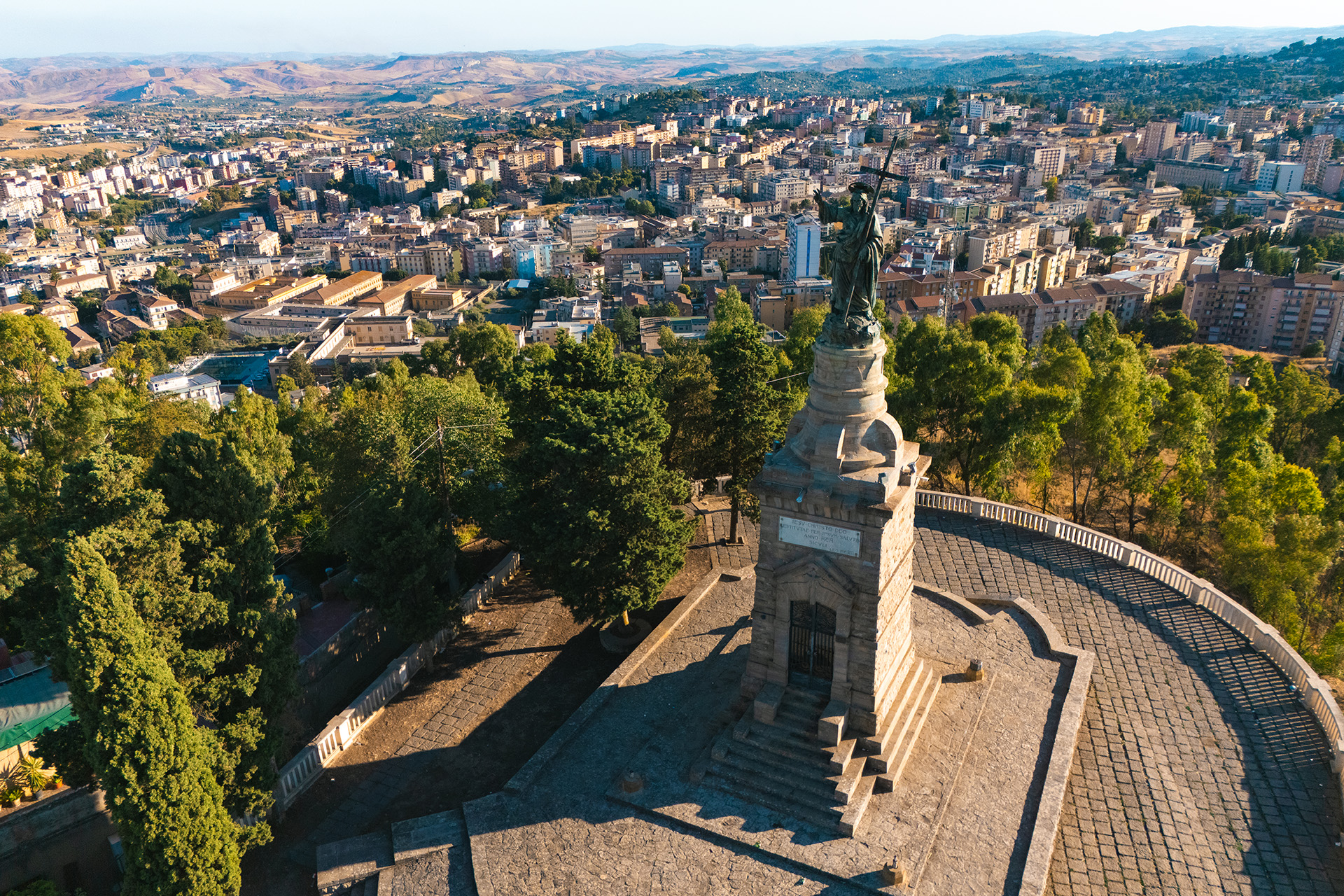 Dal belvedere lastricato si gode di un ampio panorama sulla città e sulla Sicilia centrale, mentre la statua, orientata verso nord-est con la schiena rivolta a Caltanissetta, ha alimentato nel tempo leggende sul suo presunto sguardo distaccato, essa comunque ha lo sguardo rivolto verso il Vaticano. La festa del Redentore, celebrata il 6 agosto in coincidenza con la Trasfigurazione di Gesù, richiama ancora oggi fedeli e visitatori in processione dal centro storico fino al monumento, animando il colle di infiorate e luminarie che uniscono devozione e spettacolo popolare.