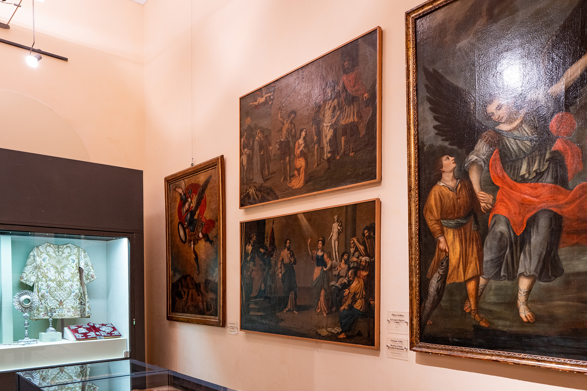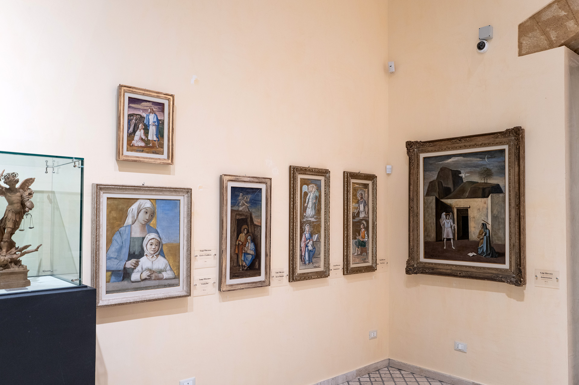 Il percorso espositivo si completa con una sezione dedicata all’arte contemporanea, dove si trovano opere di grande pregio come il Malatiello di Gemito, il Volto di Maria di Tripisciano, una statuetta acroma di San Michele realizzata da Frattallone, un dipinto di Carpi e lavori di artisti come Tesei, Ciminaghi, Consadori, Filocamo, Longaretti, Manfrini, Pellini e Ruffini.