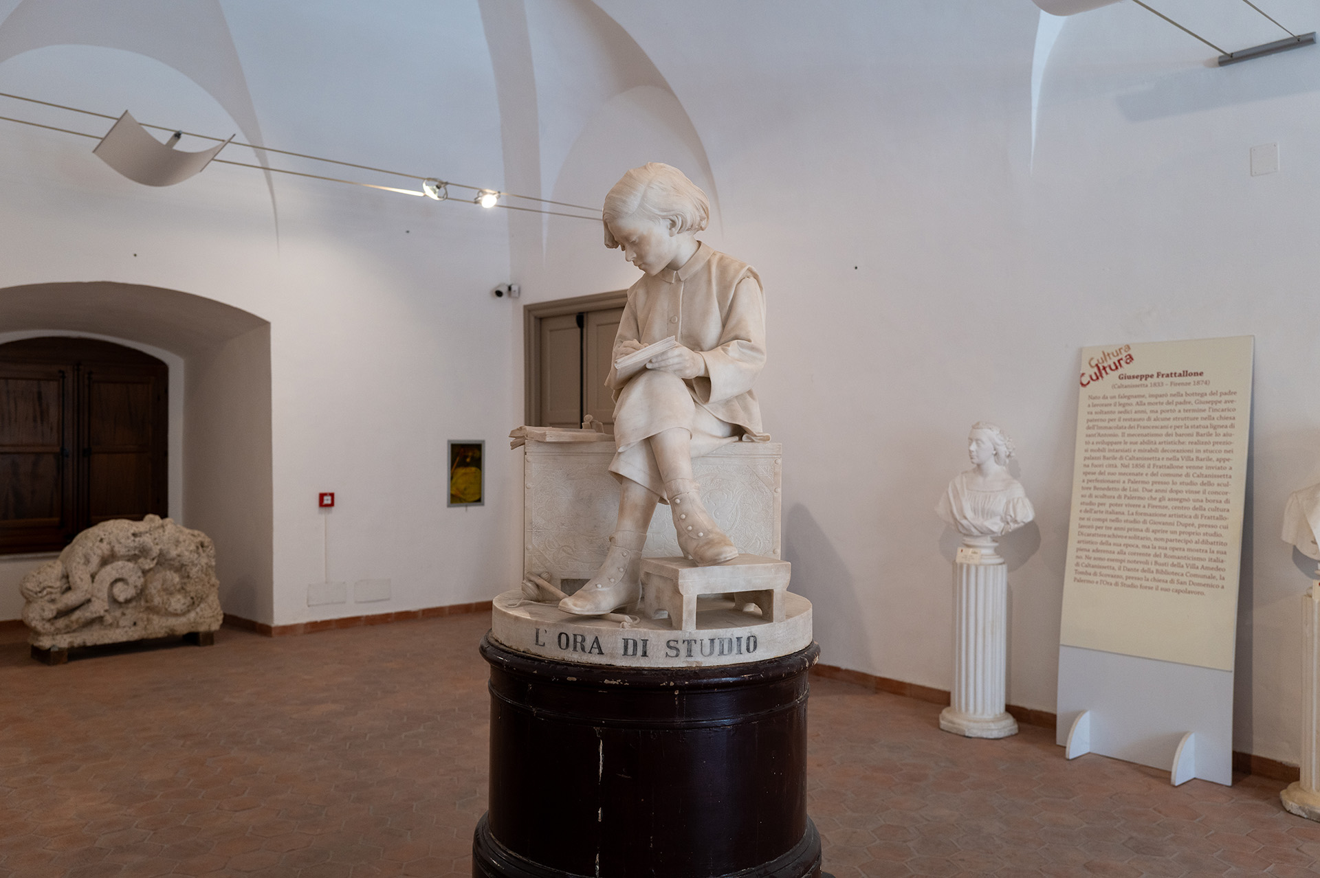 Acquisito in parte dal Comune negli anni Settanta, il palazzo è stato restaurato recuperando le altezze originali dei saloni e aprendo, dal 2010, la Galleria Civica d’Arte: qui due mostre permanenti raccontano la saga feudale dei Moncada attraverso ritratti, documenti e mappe storiche, e celebrano lo scultore nisseno Michele Tripisciano con modelli in gesso e bronzi liberty. Le sale ospitano rassegne temporanee di grafica, fotografia e arte contemporanea: tra le più recenti “Collettiva A15” (settembre 2024) che ha riunito installazioni e dipinti di giovani artisti isolani, e la mostra “I Sogni di San Giuseppe” con 52 opere di arte sacra contemporanea, evento inserito nel circuito “Vie dei Tesori”.