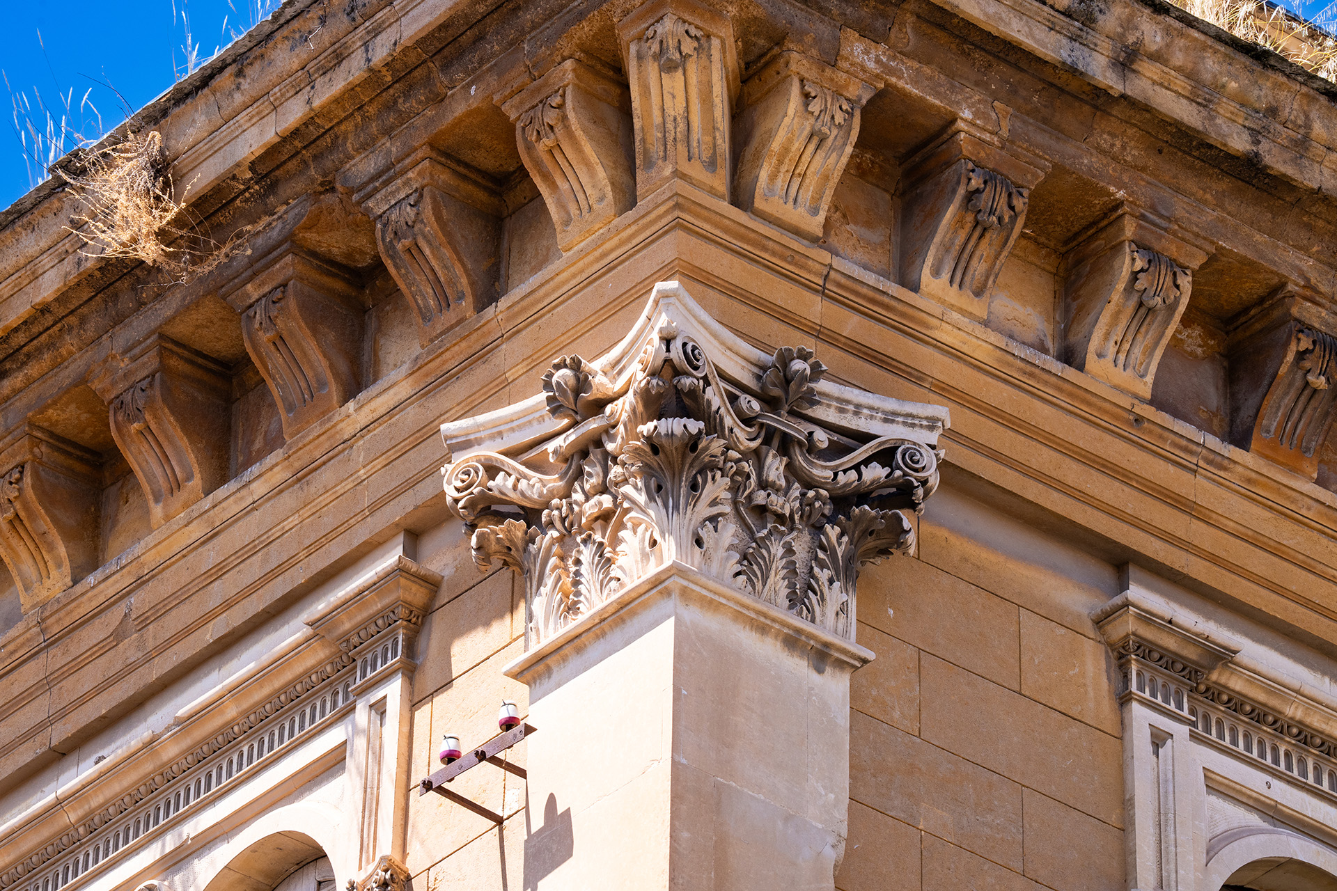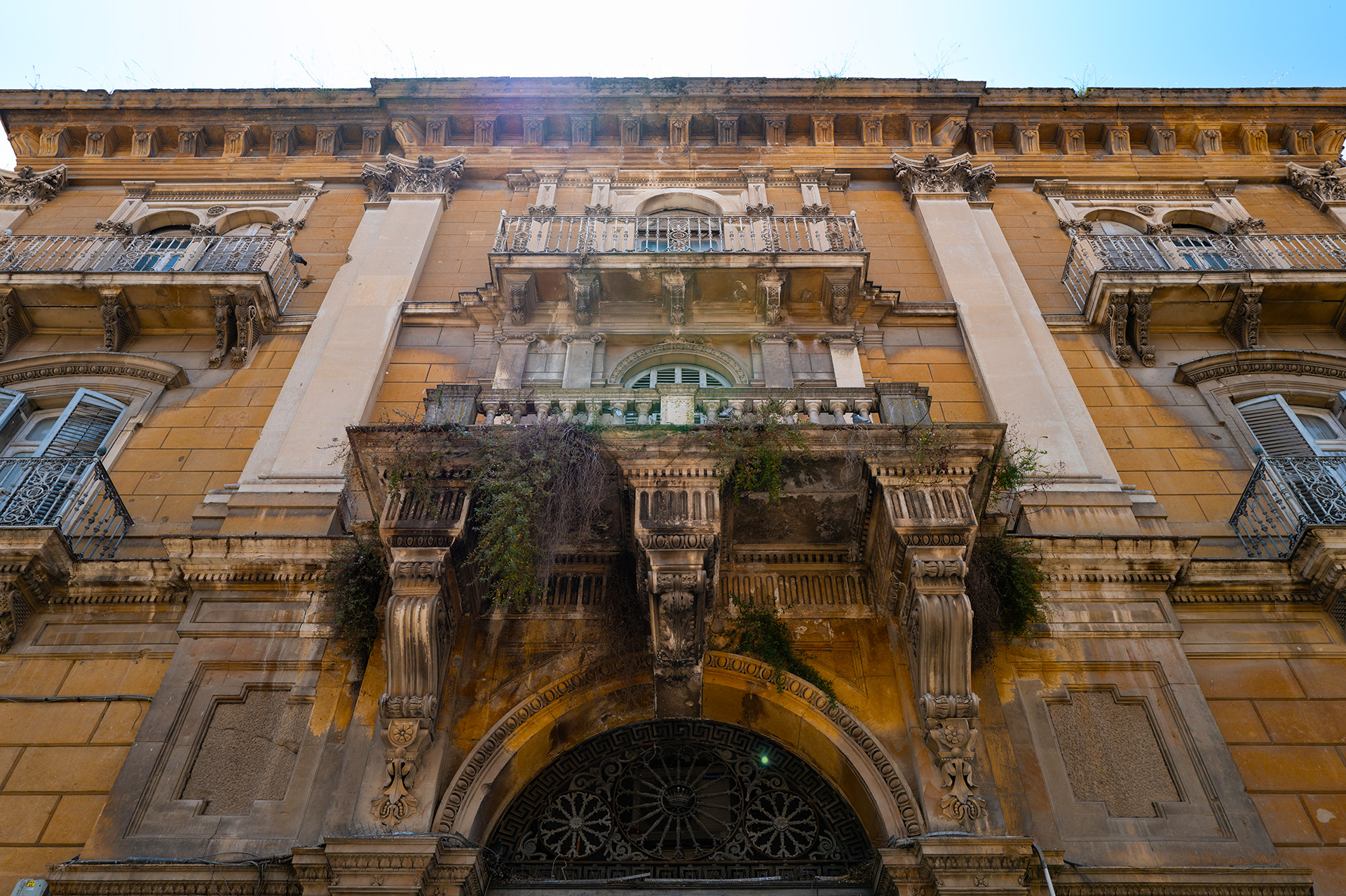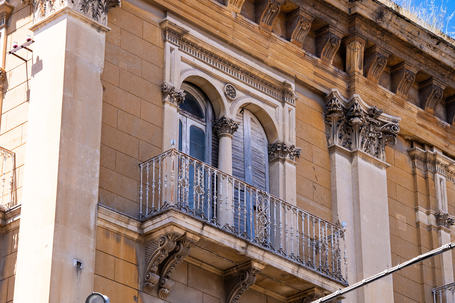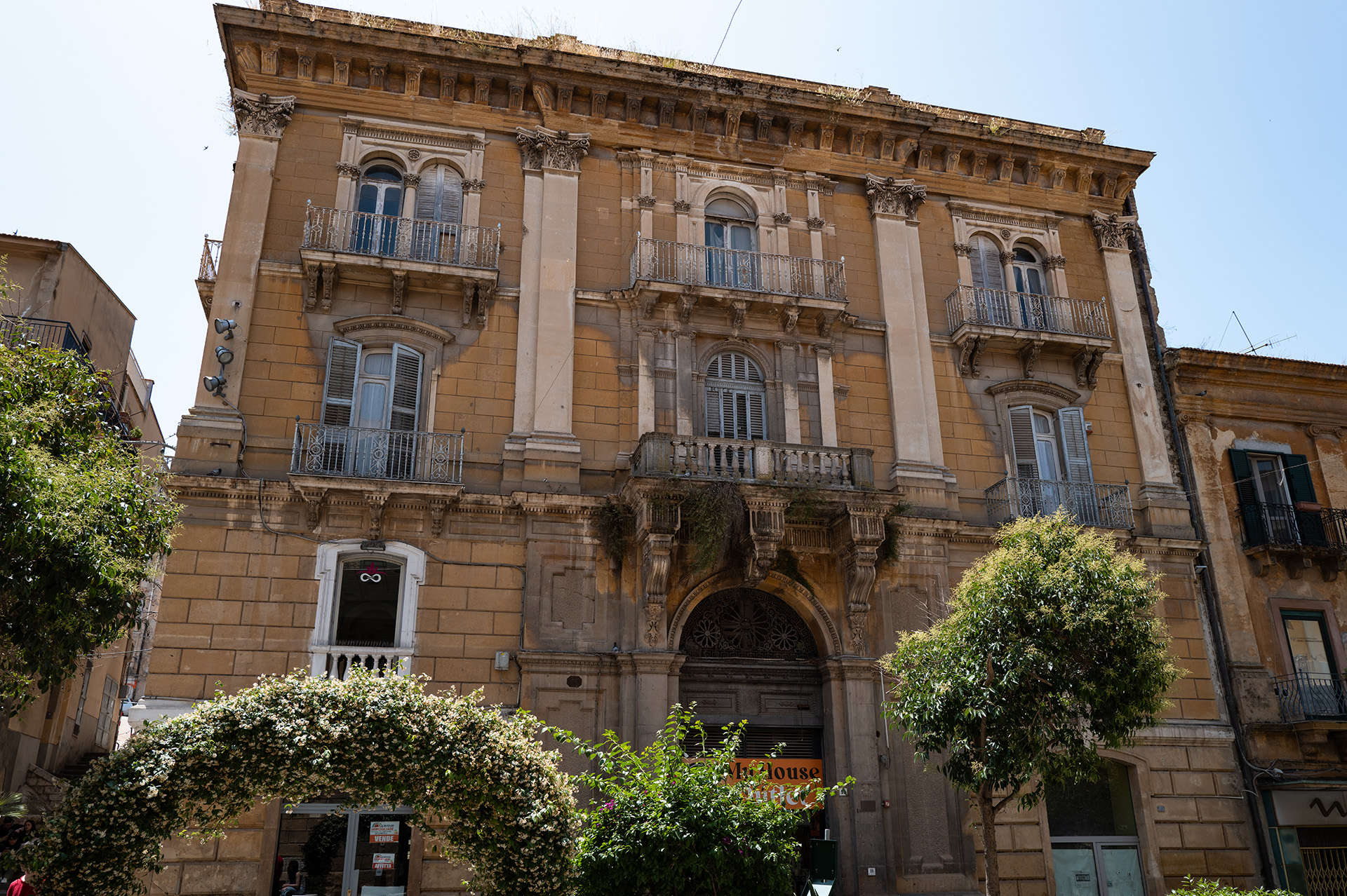 Il palazzo ospitò ricevimenti, concerti e summit politici (qui furono discusse le prime misure di tutela dei “carusi” delle zolfare) e accolse personalità come il premier Francesco Crispi, grande estimatore del conte; ancora oggi sopravvive la cappella familiare con pavimento alla veneziana e l’originario ascensore a contrappesi, rarità tecnologica per l’epoca. Se l’esterno conserva i sobri colori miele della pietra locale, l’interno sorprende per la luce diffusa da un lucernario policromo che inonda lo scalone con riflessi lagunari, facendo vibrare stucchi e specchiere dorate.