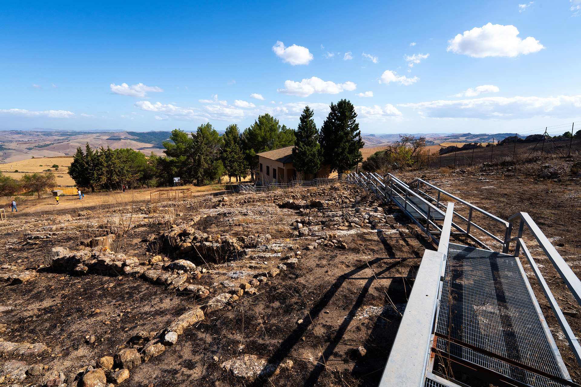 Gli scavi, avviati nell’Ottocento da Paolo Orsi e ripresi negli anni Sessanta da Piero Orlandini, hanno svelato una stratificazione che va dal Bronzo Antico al periodo romano: capanne ovali della cultura di Castelluccio, un vasto villaggio del Bronzo Recente con abitazioni absidate della facies di Pantalica Nord e, fra VIII e VI secolo a.C., un centro sicano ellenizzato da Gela, protetto da mura ciclopiche in conci bugnati e da un poderoso bastione quadrangolare. Sull’acropoli restano i basamenti di un tempietto arcaico e di un sacello ellenistico forse dedicato a Demetra, indizio di un culto agrario, mentre lungo le pendici si aprono necropoli rupestri con tombe a camera che hanno restituito crateri a figure rosse, askoi di Gnathia e oggetti in bronzo oggi nel Museo Archeologico Regionale di Caltanissetta.