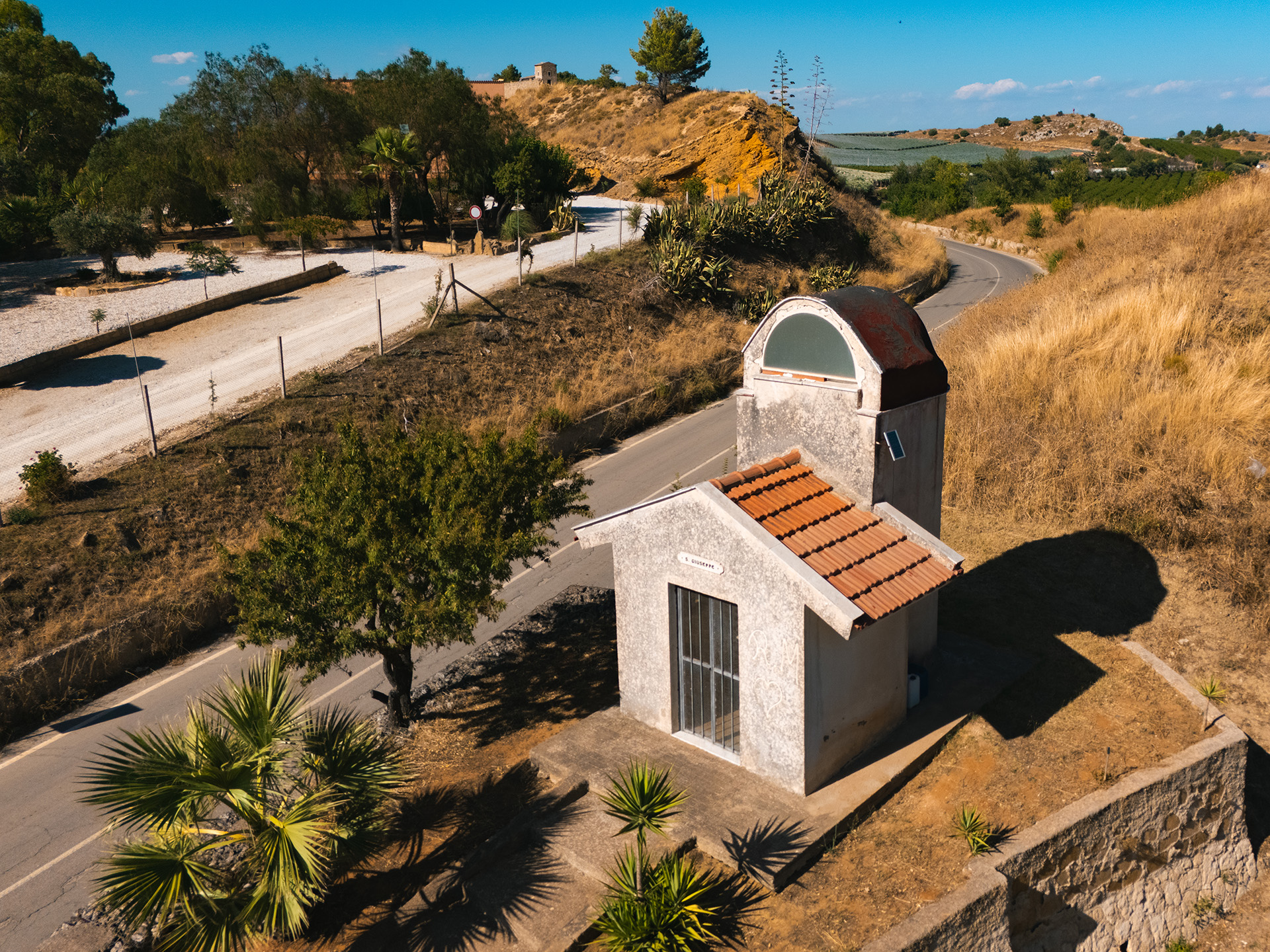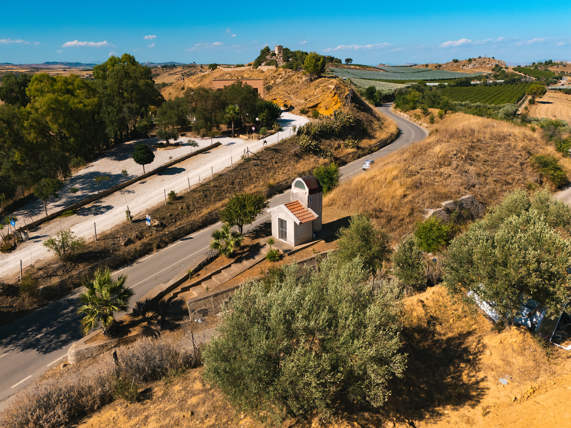 La cappella di San Giuseppe si trova nell'omonima contrada, del territorio di Delia, al confine con la contrada Cappellano, del territorio di Caltanissetta, su uno sperone di roccia isolato dal vecchio e dal nuovo tracciato della SP1 Delia-Caltanissetta, che in questo punto tagliano il monte Comune, interrompendo la continuità del crinale sul quale doveva trovarsi il vecchio tracciato della trazzera Naro-Caltanissetta.