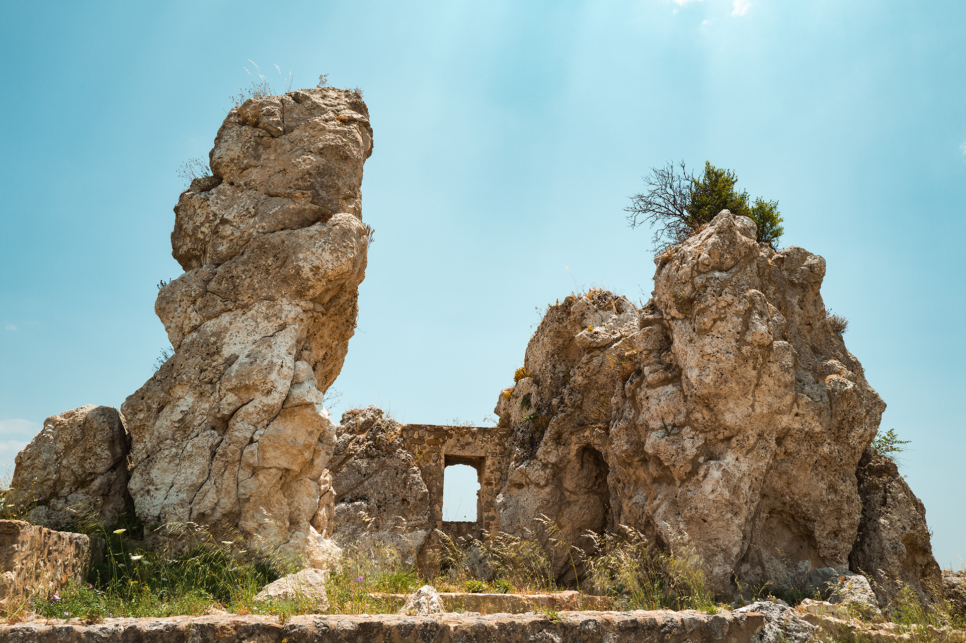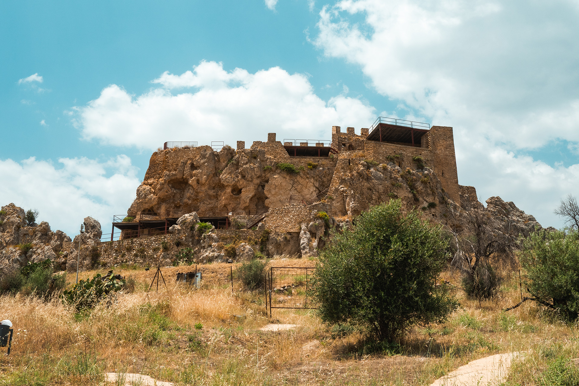 Il sito in cui sorge il castello, come testimoniano le campagne di scavo condotte, è stato popolato a partire dal terzo millennio a.C. La struttura del castello è articolata in quattro livelli: il primo livello presenta un’altezza variabile che si adatta alla morfologia del terreno, con quote più basse a nord. Nella parte orientale è posto l'ingresso, coperto con volta a botte archiacuta; il secondo livello corrisponde al piano posto sopra la volta d'ingresso; il terzo livello conserva l'unico ambiente coperto giunto ai nostri giorni, con copertura a volta a sesto acuto e cinque feritoie alle pareti, mentre l'ultimo presenta un camminamento merlato e i resti della torre più grande con quattro finestre verso occidente.
