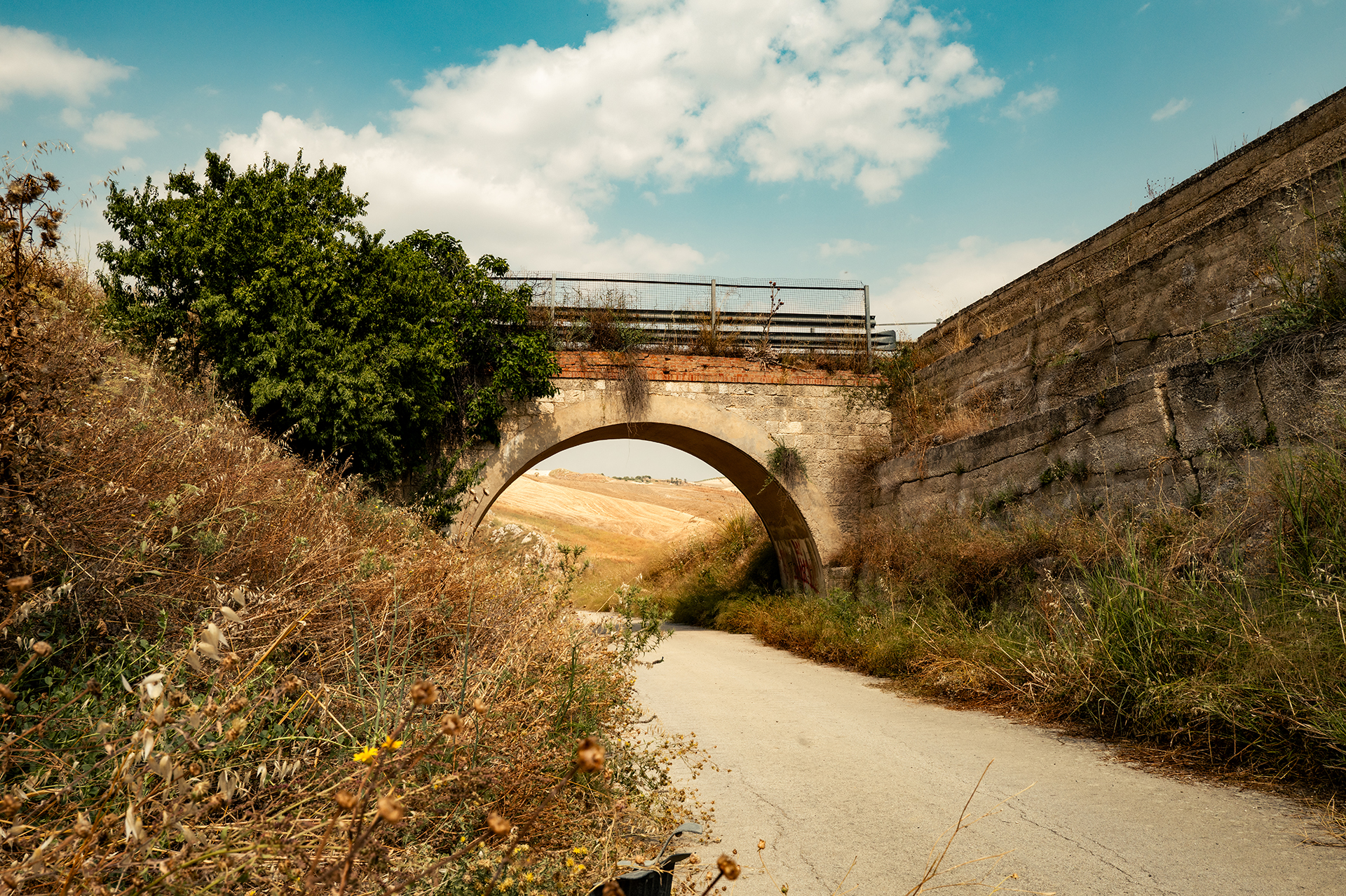 L’opera, progettata dall’ingegnere Salvatore Amari, fu considerata un capolavoro di ingegneria leggera, in grado di resistere alle forti sollecitazioni dei treni merci carichi di minerali. Il ponte si staglia su una valle ricca di coltivazioni e offre un punto di osservazione privilegiato per ammirare il paesaggio rurale, con uliveti secolari e boschi di mandorle in fiore.