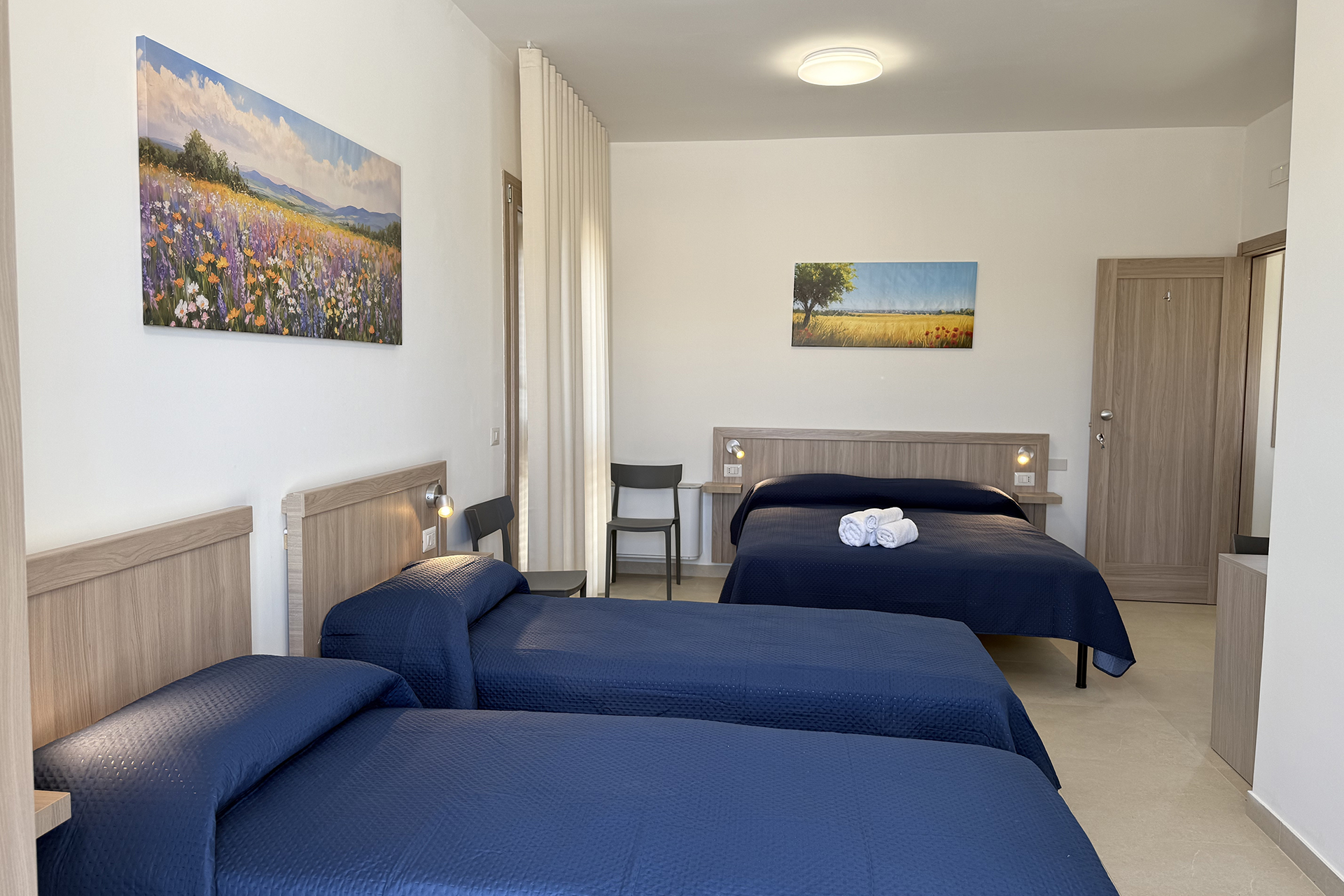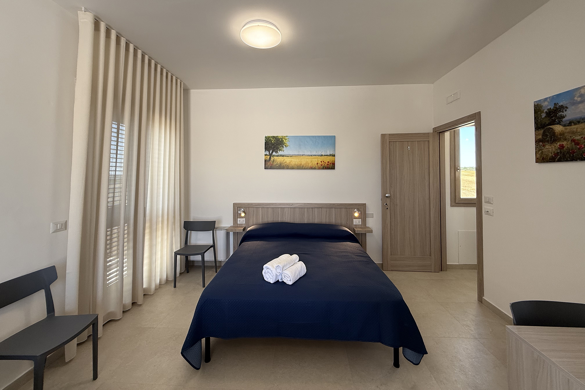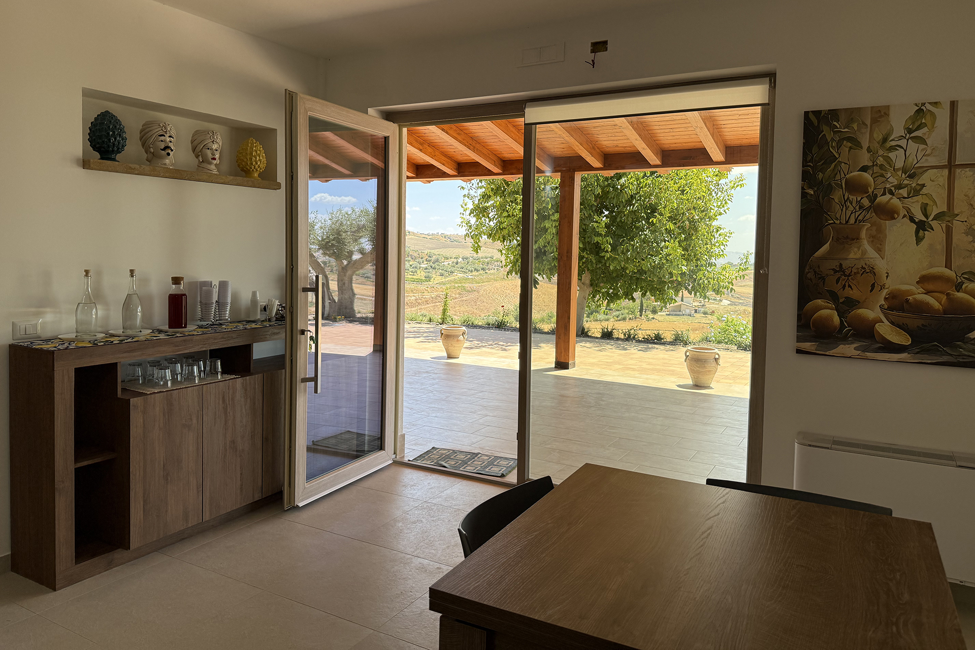Le nostre quattro camere, accoglienti e arredate con gusto, offrono tutto il comfort per un soggiorno rilassante: climatizzatore, smart TV, frigo bar, bagno privato e Wi-Fi gratuito. Due camere sono accessibili anche a ospiti con disabilità. L’atmosfera è calda e familiare, accompagnata dal silenzio della campagna siciliana.