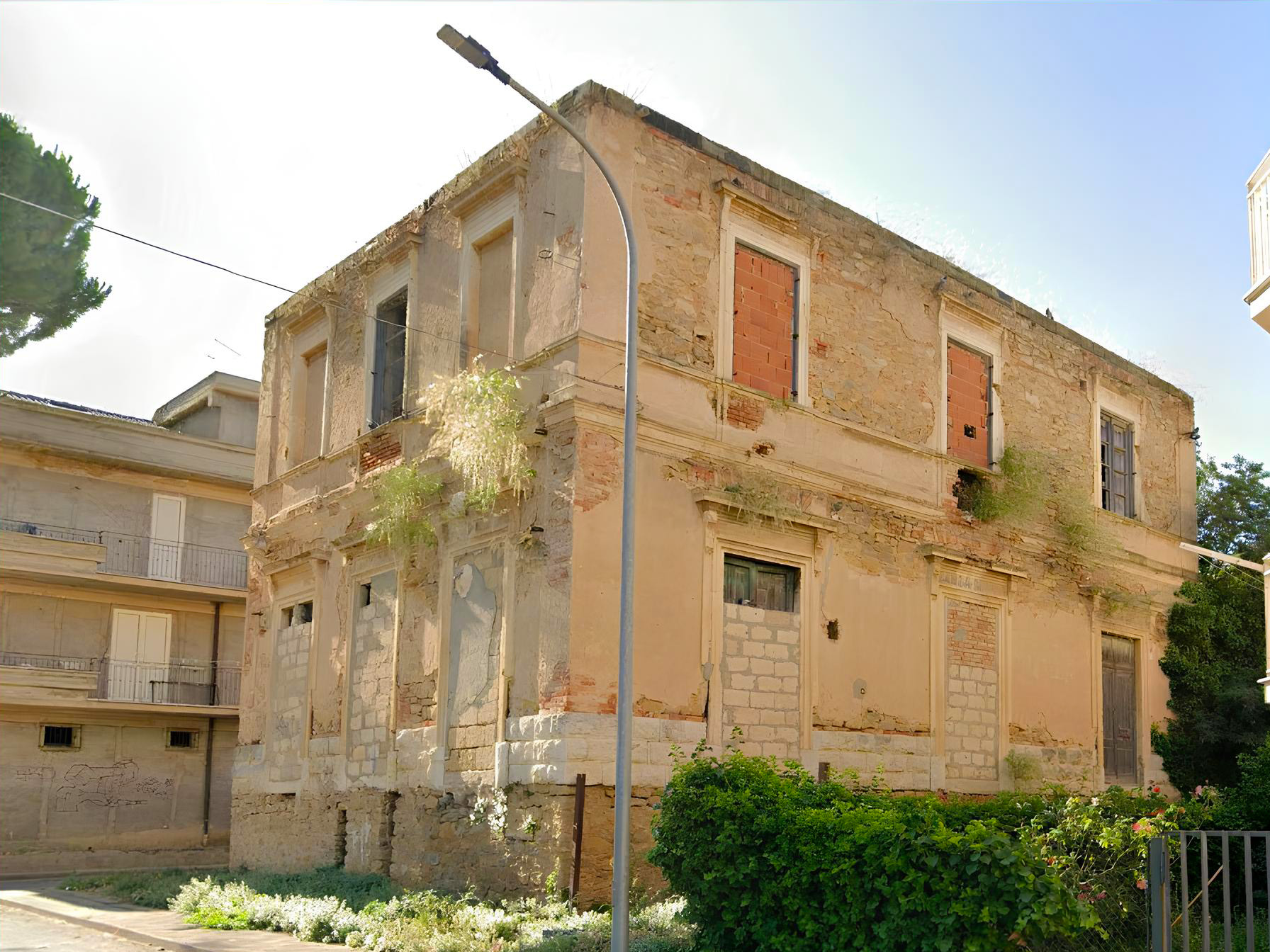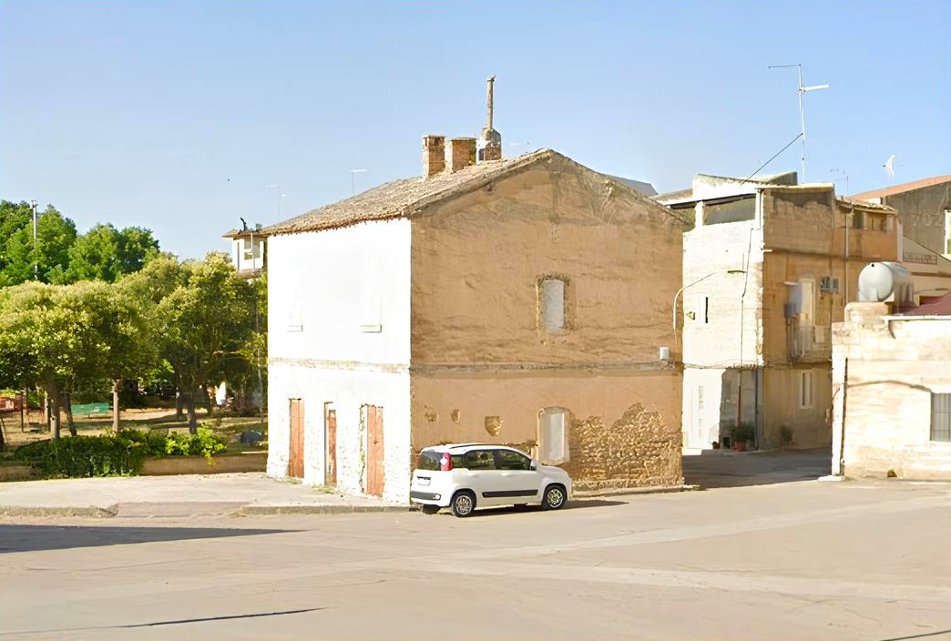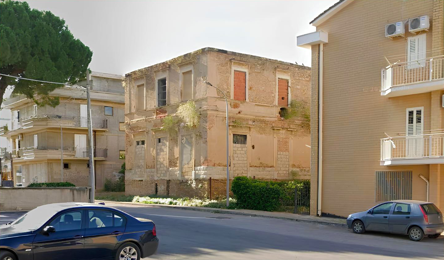 The images show a building that, despite its evident abandonment and decay - with flaking plaster revealing the masonry beneath, bricked-up windows and doors, and spontaneous vegetation creeping through the cracks - still preserves its dignity and structural solidity. Its architecture, typical of rural stations of the era, features a rectangular plan and a sober yet functional façade, with an attached warehouse essential for freight logistics, particularly sulfur transport.