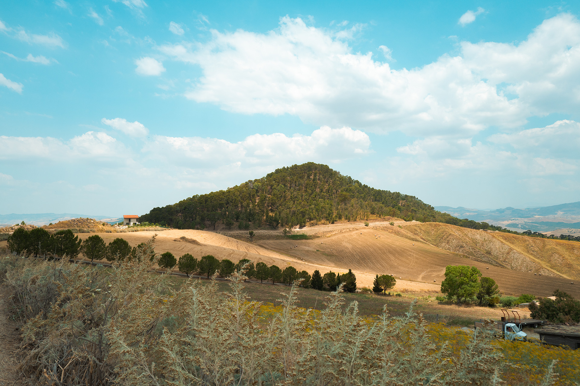 A pochi passi dal bosco scorre il Fiume Salito, un corso d’acqua che attraversa le dolci colline del nisseno e che ha avuto un ruolo fondamentale nello sviluppo storico e agricolo della zona. Il toponimo medievale “Casale Chaliruni”, che indicava il primo nucleo abitato di San Cataldo, deriva proprio dalla presenza del fiume e dal termine greco Kalyroon, che significa “scorrere con dolcezza”. Il Salito, alimentato da sorgenti stagionali e argillose, ha favorito per secoli la coltivazione di orti, frutteti e la vita pastorale, arricchendo la biodiversità del territorio.