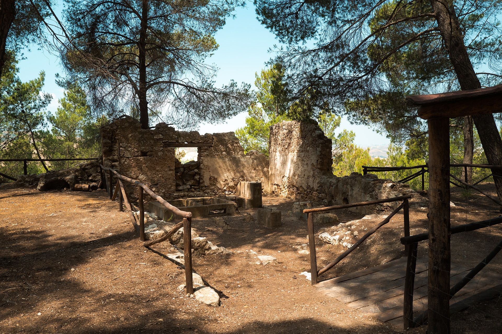 Oggi il bosco, popolato anche da pini e cipressi, offre piacevoli sentieri escursionistici che attraversano crinali, macchie verdi e antiche strutture minerarie, creando un paesaggio di grande fascino. Sotto il profilo geologico, la zona si colloca all’interno del grande bacino gessoso-solfifero siciliano, un complesso di età supramiocenica particolarmente ricco di sali e minerali. Questa ricchezza naturale ha favorito, tra il XIX e il XX secolo, lo sviluppo di numerose zolfare. Si contano almeno una decina di concessioni minerarie, che in contemporanea hanno trasformato il monte Gabara in un inferno dantesco, allorquando entravano in attività i forni fusori per la separazione dello zolfo, l’oro del diavolo, dalla ganga, nello specifico formata da roccia gessosa.