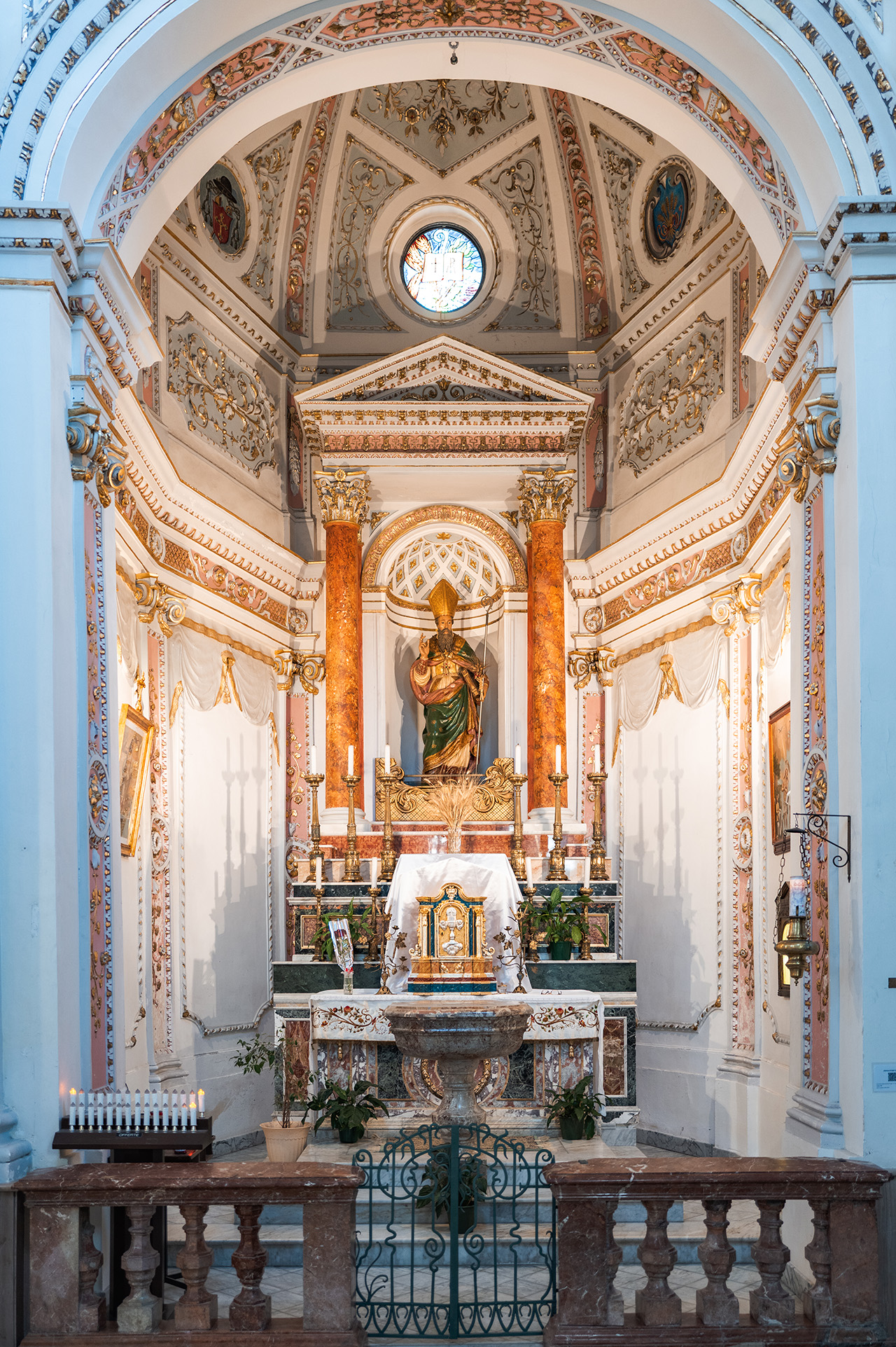 Fondata nel 1620 per volontà del barone Nicolò Galletti, la chiesa fu costruita su un'altura rocciosa, nei pressi del castello, per servire una popolazione in crescita che necessitava di un luogo di culto più ampio rispetto alla precedente chiesetta intitolata a San Cataldo. L'edificio si presenta con pianta basilicale tripartita a croce latina con ampio transetto e con alta volta a botte adornata da stucchi neoclassici e pseudo cupola centrale.