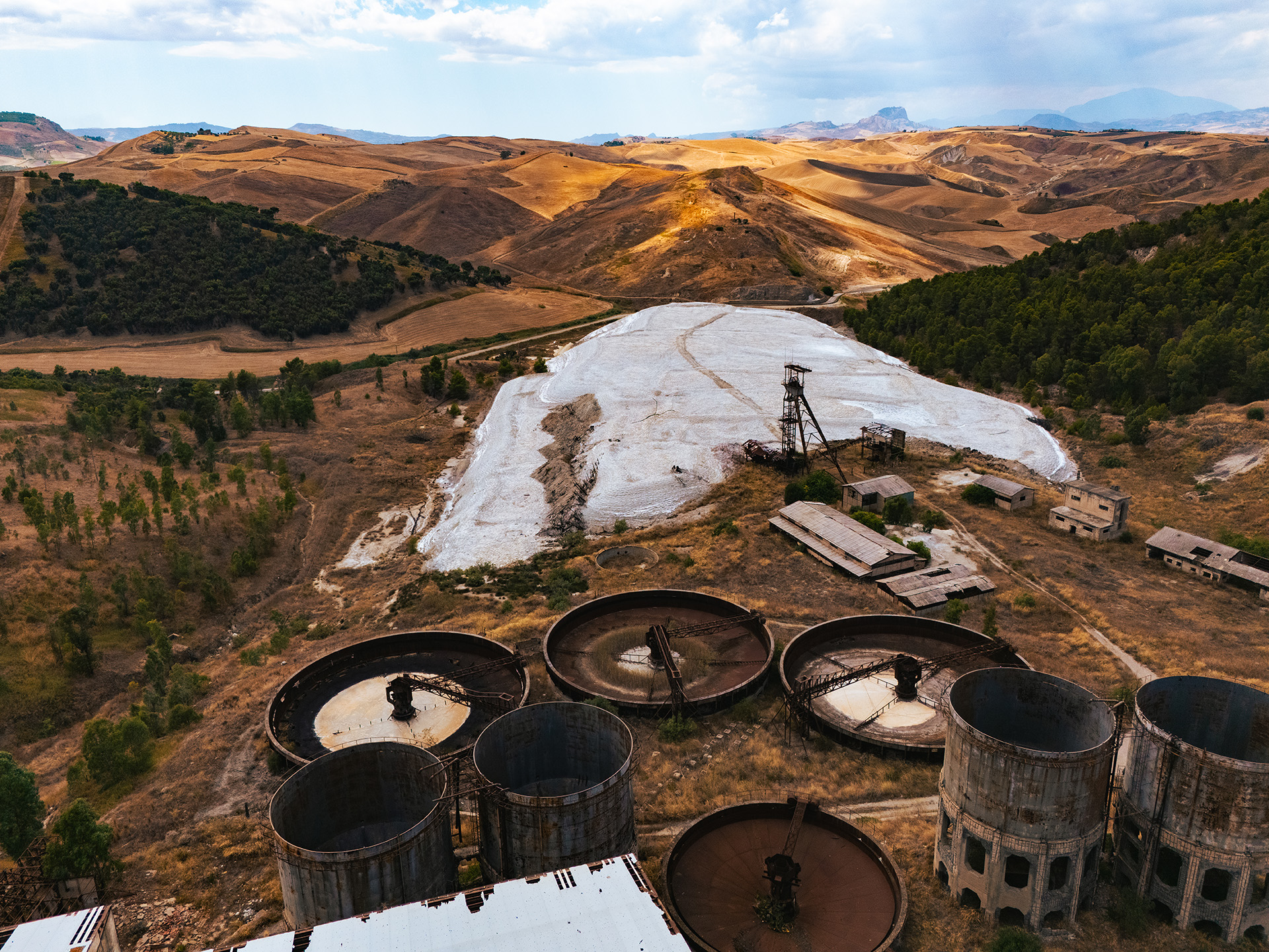 Durante il picco dell’attività, il sito contava centinaia di lavoratori ed era dotato di un vero e proprio villaggio residenziale con servizi e spazi sociali, che lo rendeva un vero e proprio microcosmo sociale. Il progressivo esaurimento dei filoni più ricchi e i costi elevati di estrazione portarono alla sua chiusura definitiva nel Natale del 1985, lasciando un grande vuoto occupazionale e sociale nella zona. Ancora oggi si ricorda la teleferica, lunga 18 chilometri, che portava la kainite arricchita all’impianto di Casteltermini, per la preparazione del solfato di potassio disponibile per la commercializzazione. Purtroppo, la teleferica venne abbattuta nel primo semestre dell’anno successivo alla chiusura e sul campo rimane un traliccio coricato ai margini del bacino degli inerti, la cosiddetta montagna di sale, e un latro ancora in piedi al centro di quello che rimane del laghetto che alimentava l’impianto di Casteltermini.
