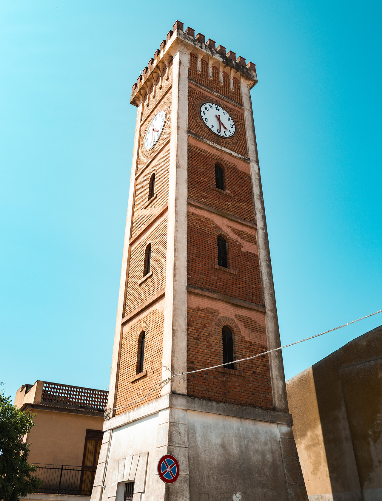 Nel 1780 fu installato l’orologio con quattro quadranti e nel 1959 la torre fu abbattuta per poi essere ricostruita su progetto dell’ingegnere Alfonso Augello. Il fusto quadrangolare, coronato da una merlatura guelfa, poggia su un ampio basamento composto da quattro riquadri, l'ultimo dei quali si fregia di ospitare l'attuale orologio, proveniente dalla ditta Frassoni di Rovato (BS).