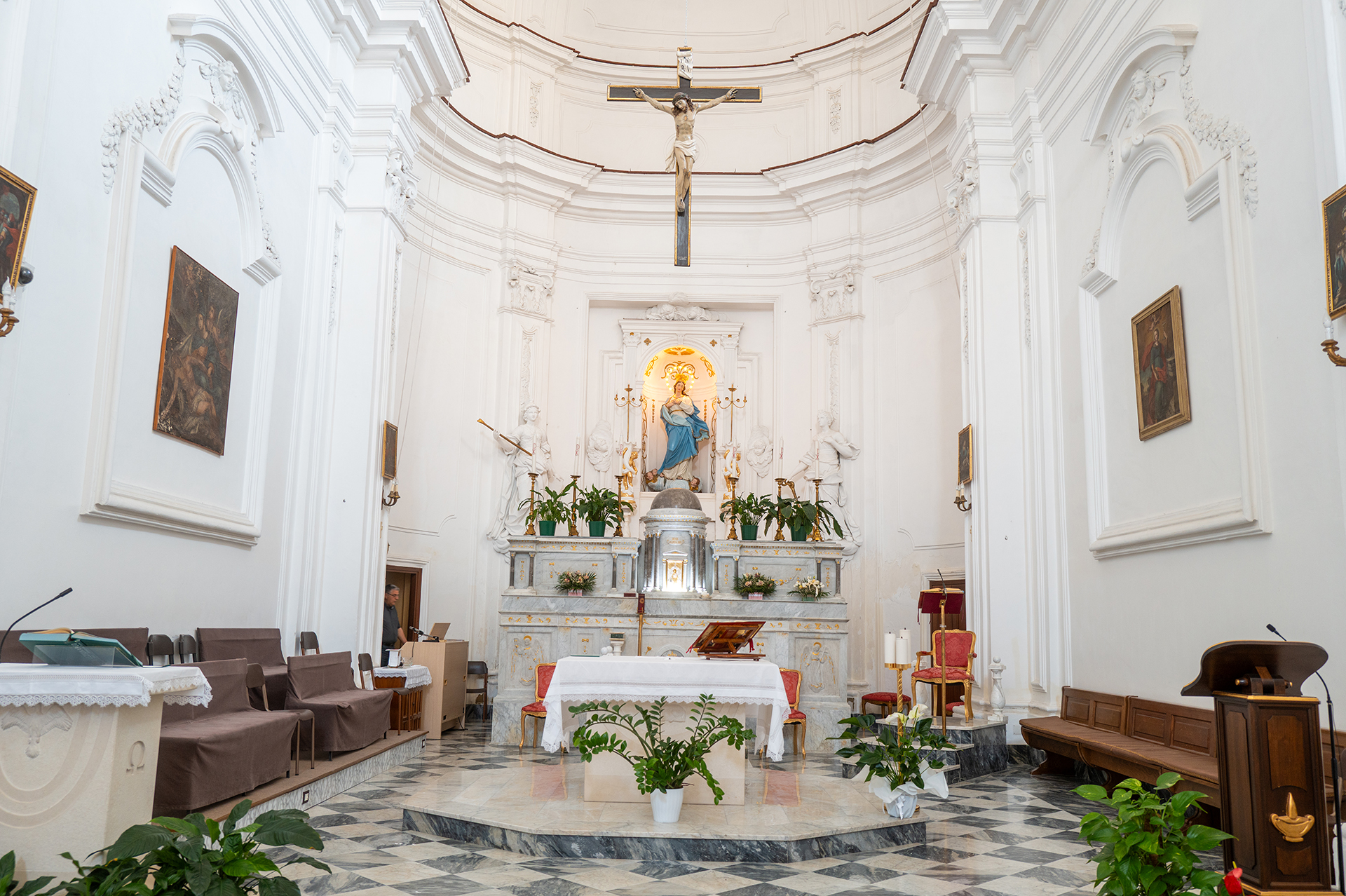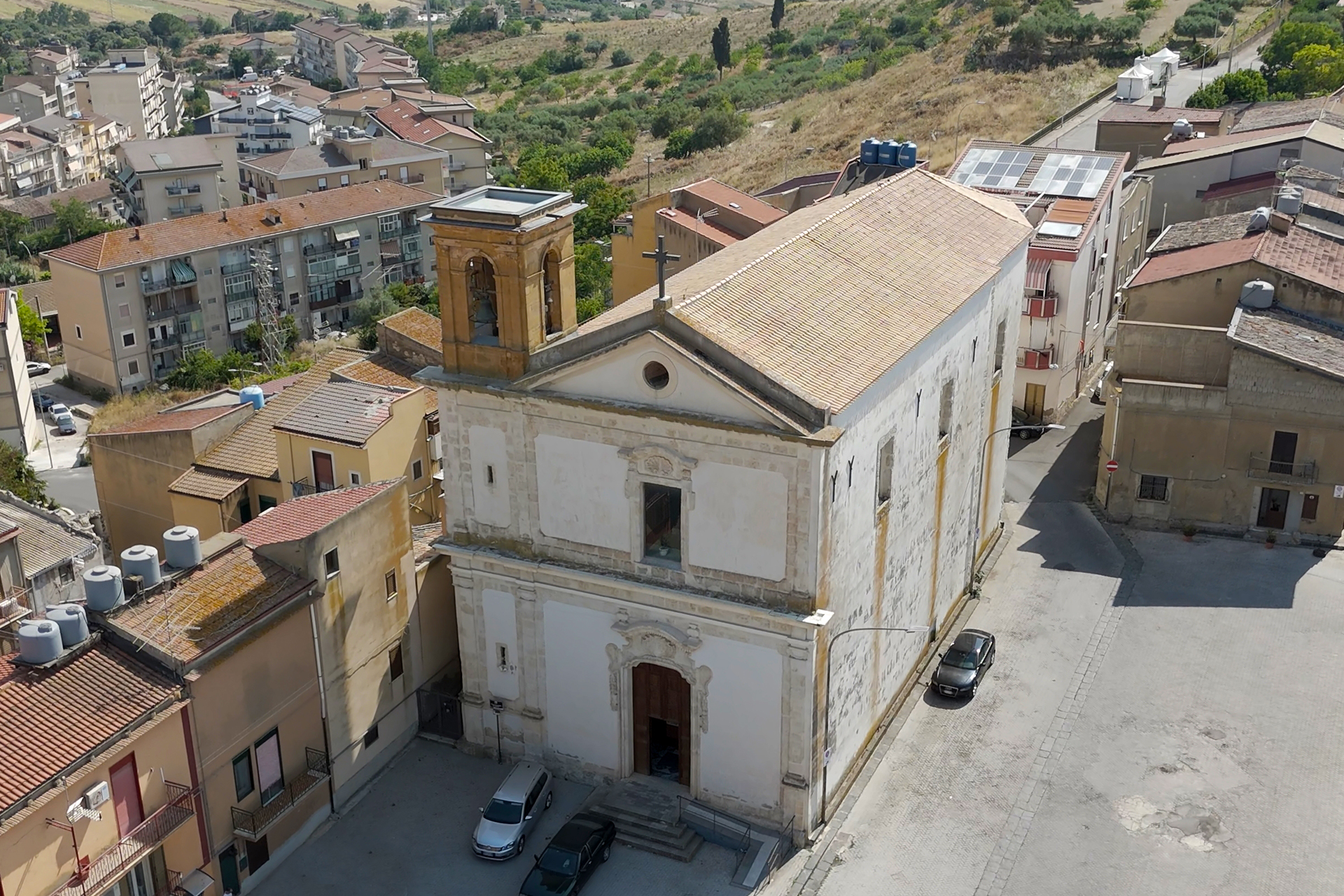La sua costruzione avvenne sul sito precedentemente occupato dall'antica chiesa della Madonna del Rosario, nota anche come Madonna di S. Maria delle Grazie. La facciata della chiesa, semplice ma armoniosa, è caratterizzata da stucchi che ornano il portale e la finestra sovrastante, conferendo eleganza all'edificio.