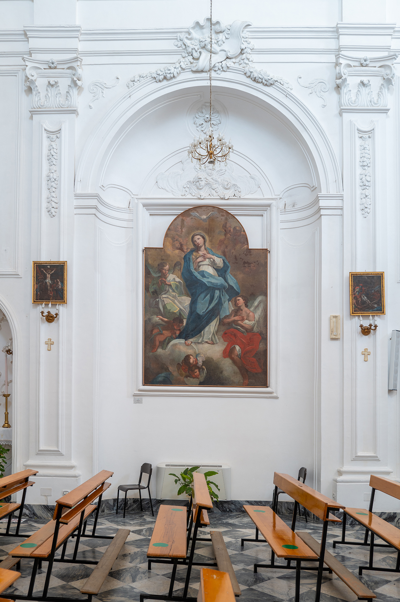 All'interno, la chiesa custodisce opere d'arte di rilievo, tra cui quattro tele del pittore palermitano Vito D'Anna: San Giuda Taddeo, L'Immacolata Concezione, Sant'Ignazio di Loyola e San Francesco Saverio, e San Luigi Gonzaga e San Stanislao Kostka con Madonna e Bambino. Queste opere testimoniano l'importanza della chiesa come centro di devozione e cultura.
